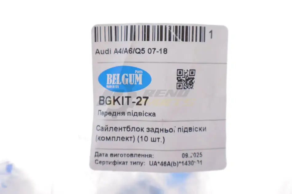 BelGum Parts - український виробник, під брендом якого виготовляються гумотехнічні вироби, переважно для легкових та комерційних автомобілів. В асортименті виробника знайдеться широкий вибір сайлентблоків, пильовиків кульової опори та рульових наконечників для всіх популярних марок і моделей автомобілів.