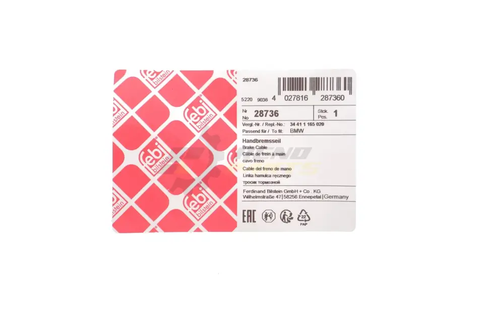 Трос ручника (R) BMW 3 (E46) 98- (1700mm) FEBI BILSTEIN 28736