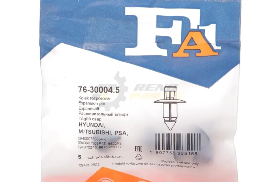 Кліпса кріплення молдингів скла лобового (к-кт 5шт) Citroen/Hyundai/Peugeot/Subaru/Suzuki/Volvo Fischer Automotive One (FA1) 76-30004.5