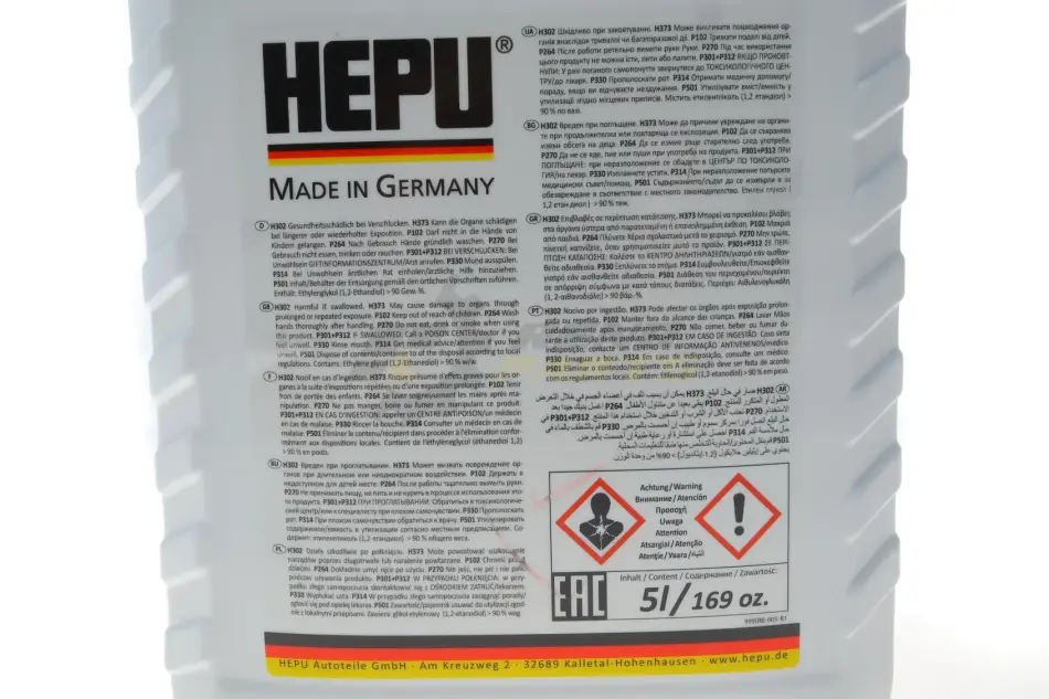 У каталогах Hepu ви можете знайти водяні помпи, зубчасті ремені та антифриз. Охолоджуючі рідини Hepu можуть похвалитися відмінним співвідношенням ціна-якість. Це відмінний антифриз з антикорозійними добавками, який можна використовувати практично в будь-яких умовах і в будь-якій автомобільній промисловості.