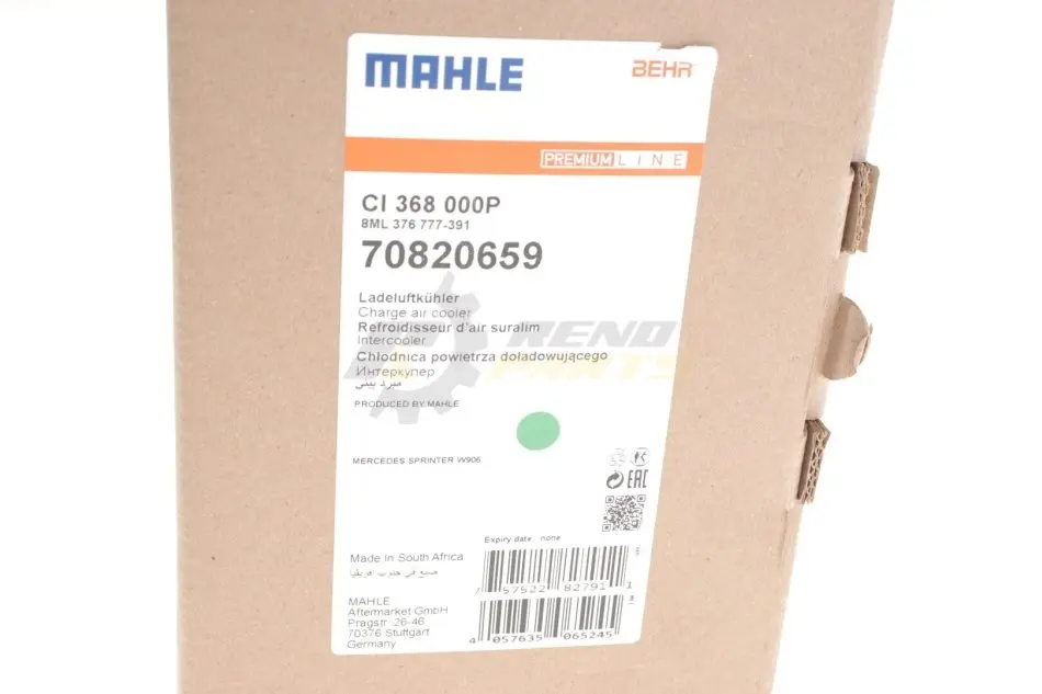 Радіатор інтеркулера Sprinter OM651 2.2CDI 09- MAHLE / KNECHT CI 368 000P