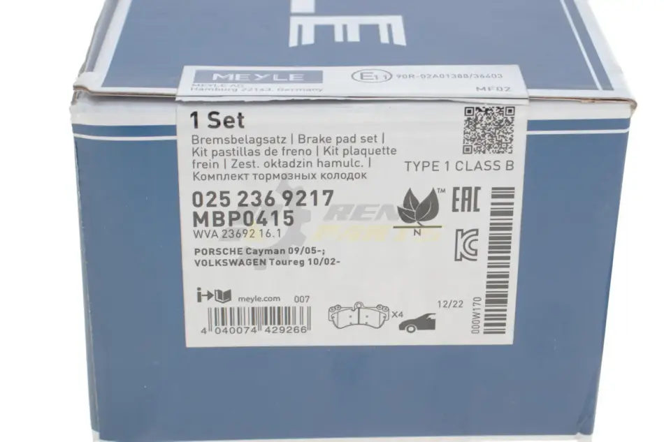 Комплект гальмівних колодок MEYLE 025 236 9217