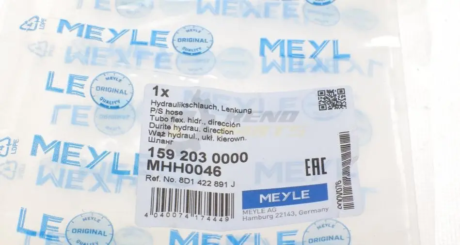 Шланг високого тиску гідропідсилювача керма MEYLE 1592030000