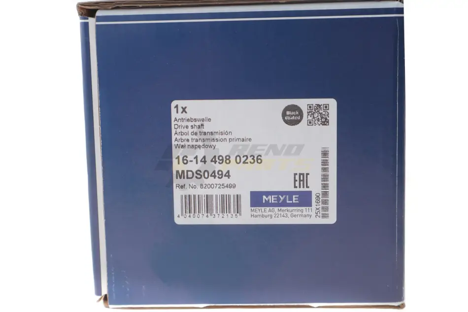 Піввісь (передня) (L) Renault Megane 1.5 dCi/1.6 16V 08- (25z/26z/688mm) МКПП MEYLE 16-14 498 0236