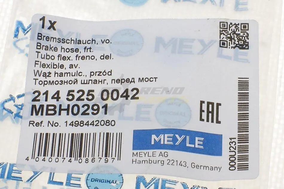 Шланг гальмівний MEYLE 214 525 0042