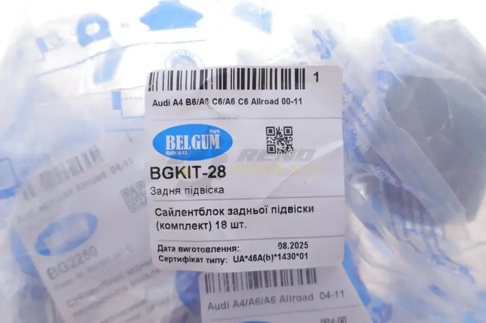 Комплект сайлентблоків задньої підвіски Audi A4/A6 00-11 (18шт) BELGUM PARTS BGКІТ-28