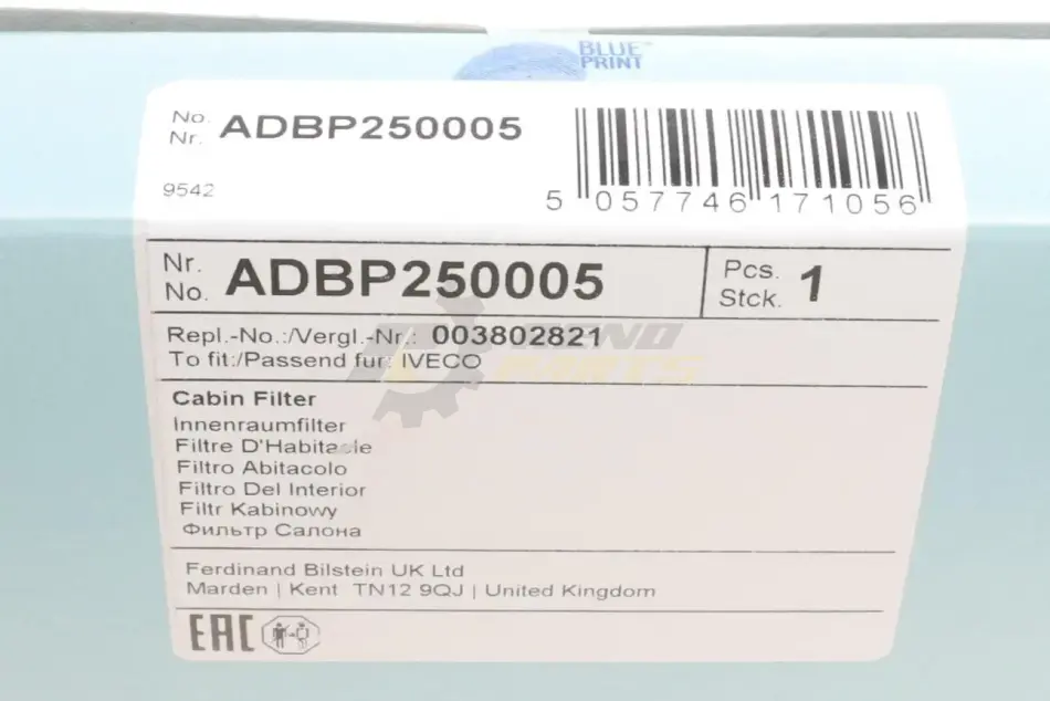 Змінний фільтруючий елемент повітряного фільтра салону BLUE PRINT ADBP250005