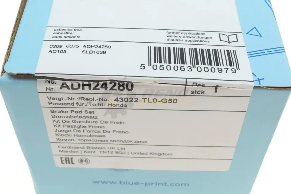 Комплект колодок тормозных BLUE PRINT ADH24280