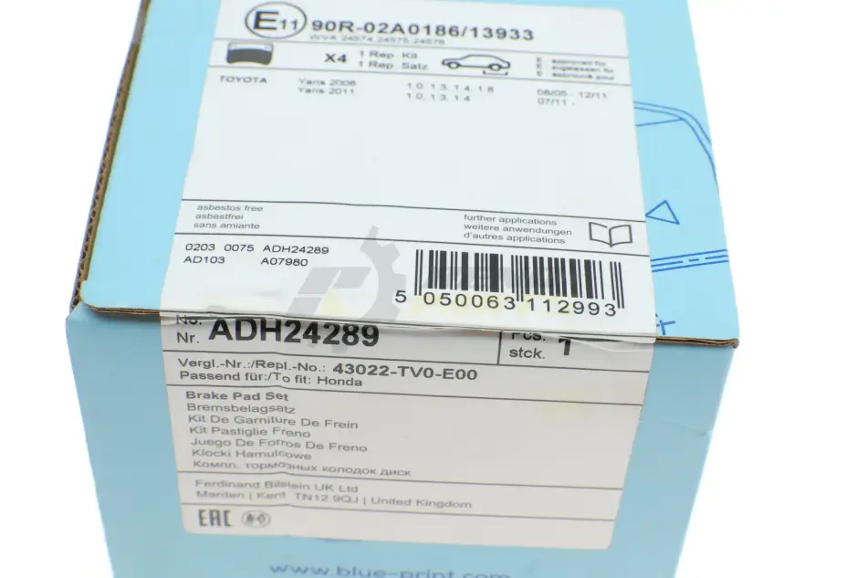 Комплект колодок тормозных BLUE PRINT ADH24289