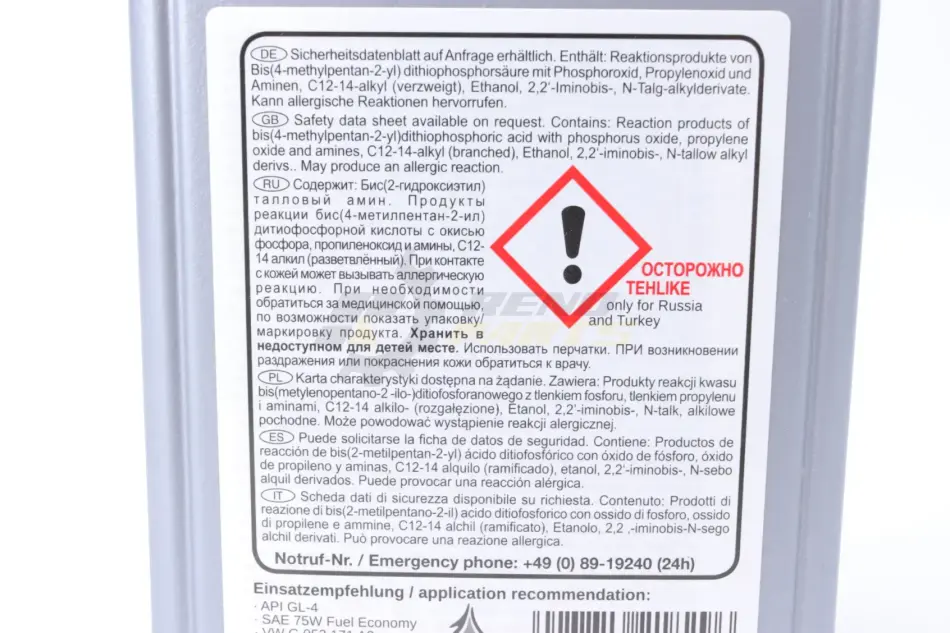 Спецификация: 75W-90 HC LS, API - GL5 LS, API - GL5, MIL-L 2105D, API - GL4