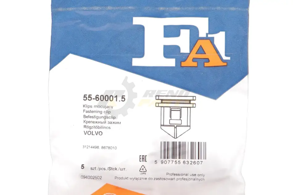 Клипса крепления (к-кт 5шт) Volvo S40 04-12 Fischer Automotive One (FA1) 55-60001.5
