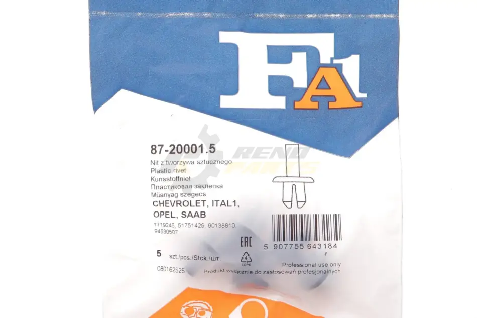 Клипса крепления подкрыла (к-кт 5шт) Opel Astra/Omega/Vectra 94-14 Fischer Automotive One (FA1) 87-20001.5
