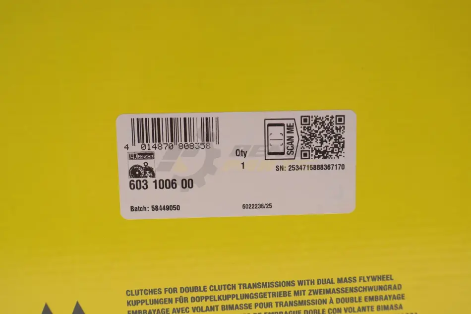 Демпфер + комплект сцепления VW CC B6/B7/Passat B7/B8/Touran (5T1) 1.8TSI, 08-, DSG7 (0AM/0CW) DQ200 LuK 603 1006 00
