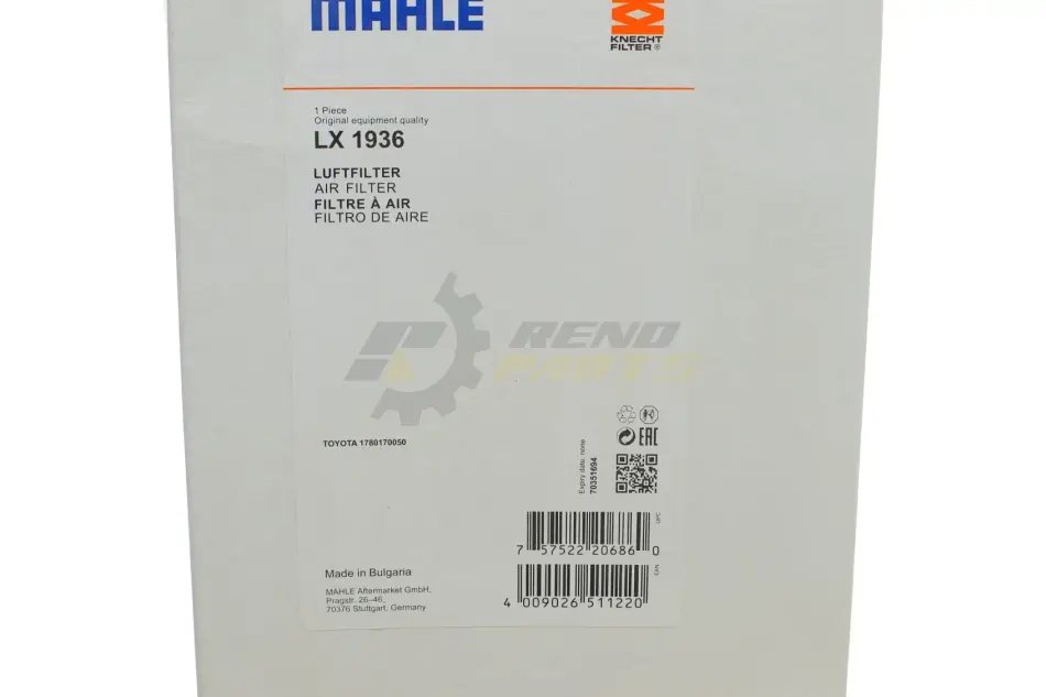 Фильтр воздушный MAHLE / KNECHT LX 1936