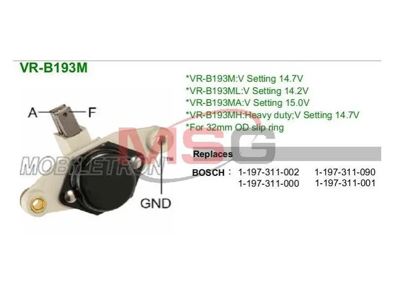 Регулятор напряжения генератора MOBILETRON VRB193M